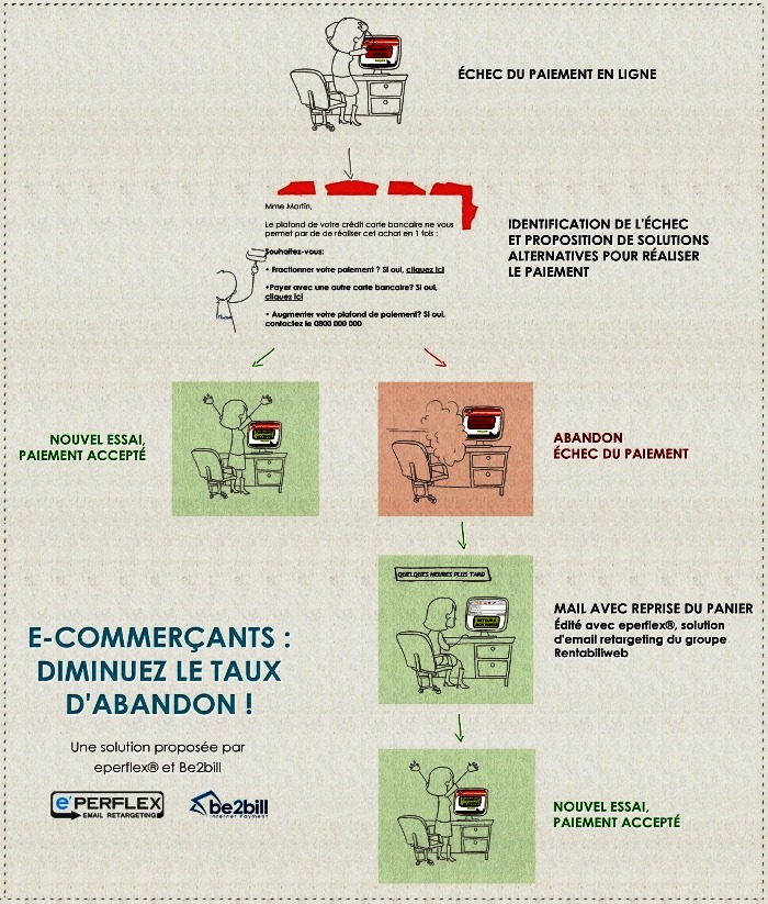 Associée à la technologie eperflex® d’email retargeting (reciblage publicitaire) développée par le Groupe Rentabiliweb, cette nouvelle fonctionnalité permet également de relancer l’internaute dans le cas d’un abandon de paiement.