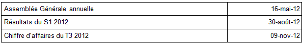 Comme déjà annoncé, les tendances de chiffre d’affaires observées au cours du premier trimestre devraient se prolonger au deuxième trimestre 2012. Confiant dans les orientations retenues pour ses deux activités, le Groupe poursuit activement le déploiement de ses savoir-faire porteurs.