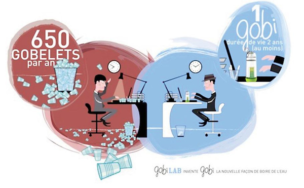 Gobi est une innovation portée par Gobilab, une jeune entreprise créée par 3 entrepreneurs en juin 2010. Une gourde personnalisée, distribuée simultanément le 23 novembre 2012 aux 200 employés du groupe Rentabiliweb visant à se substituer à n’importe quel autre contenant. Le Gobi résulte de 10 mois de recherche et de développement en écoconception, un projet soutenu par l’Ademe.